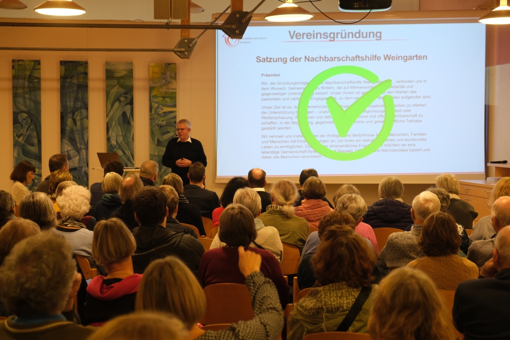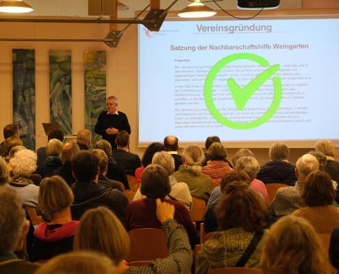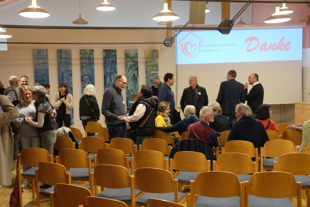 Am 5. November 2025 fand im Gemeindehaus St. Maria in Weingarten die Gründungsversammlung des Vereins „Nachbarschaftshilfe Weingarten“ statt. Über 80 Personen nahmen an der Versammlung teil – ein eindrucksvolles Zeichen für das große Interesse und Engagement in der Bürgerschaft.