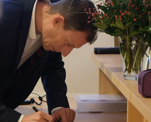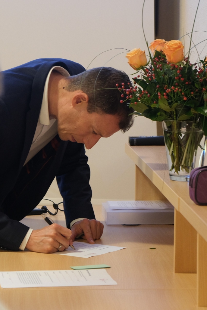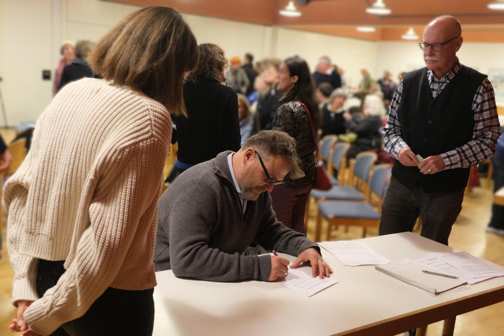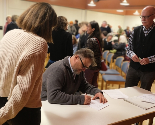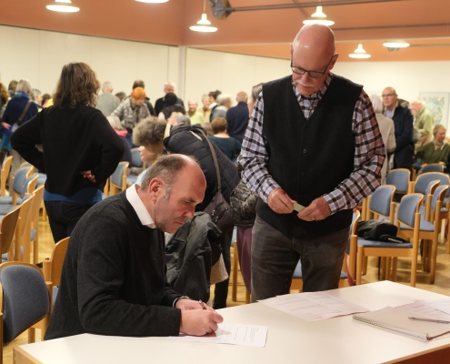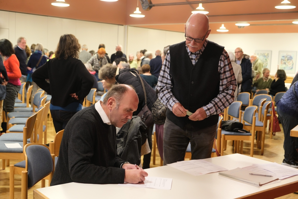 Nach einer kurzen Einführung und Darstellung der bisherigen Entwicklungen wurde der Tagesordnung nach über die Vereinssatzung abgestimmt. Diese fand mit nur einer Gegenstimme eine breite Zustimmung. Neben der Stadt Weingarten vertreten durch OB Clemens Moll, der Katholischen Gesamtkirchengemeinde Weingarten vertreten durch Pfarrer Ekkehard Schmid und Pfarrer Steffen Erstling als Vertreter der Evangelischen Kirchengemeinde Weingarten, unterzeichneten über 60 Bürgerinnen und Bürger als Gründungsmitglieder die Satzung.